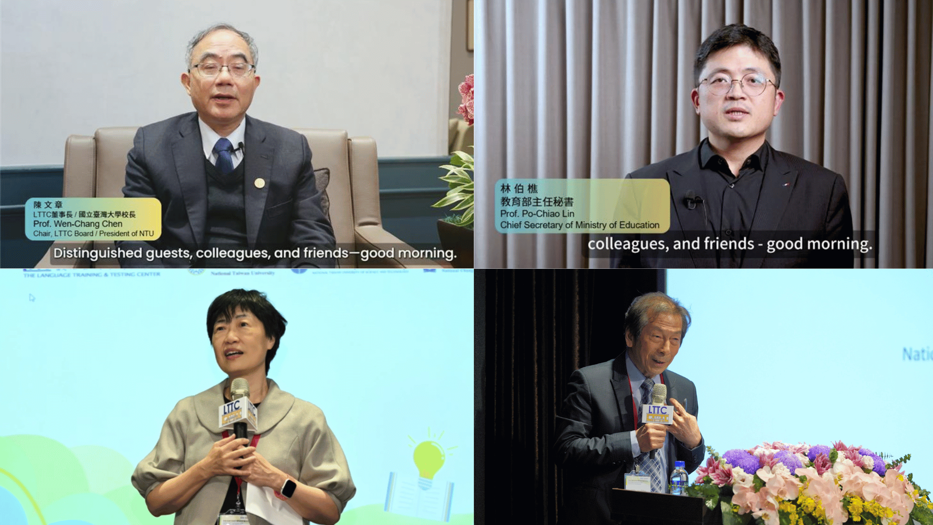 ▲ 主題講者:LTTC副執行長吳若蕙博士(左上)、澳洲墨爾本大學Jason Fan教授(右上)、LTTC研發長吳怡芬博士(左下)、東京外國語大學Yukio Tono教授(右下)。